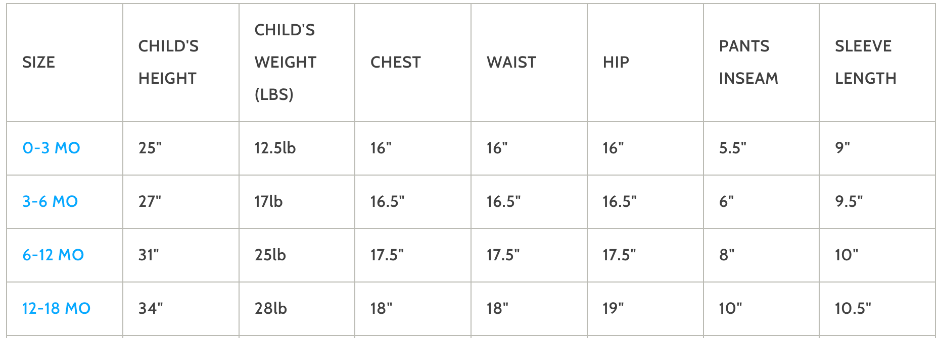 Available in size 0-3 months through 12-18 months